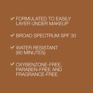 - This lightweight sunscreen for face is formulated to easily layer under makeup and helps protect against sun-induced aging including wrinkles, dark spots, fine lines and discoloration