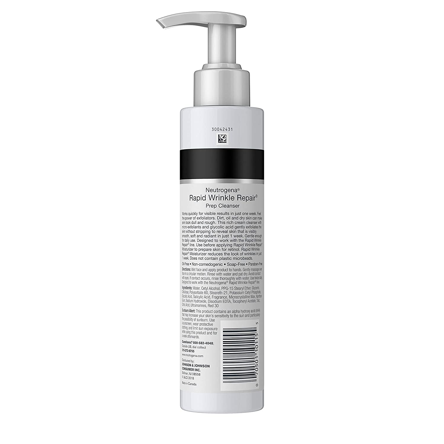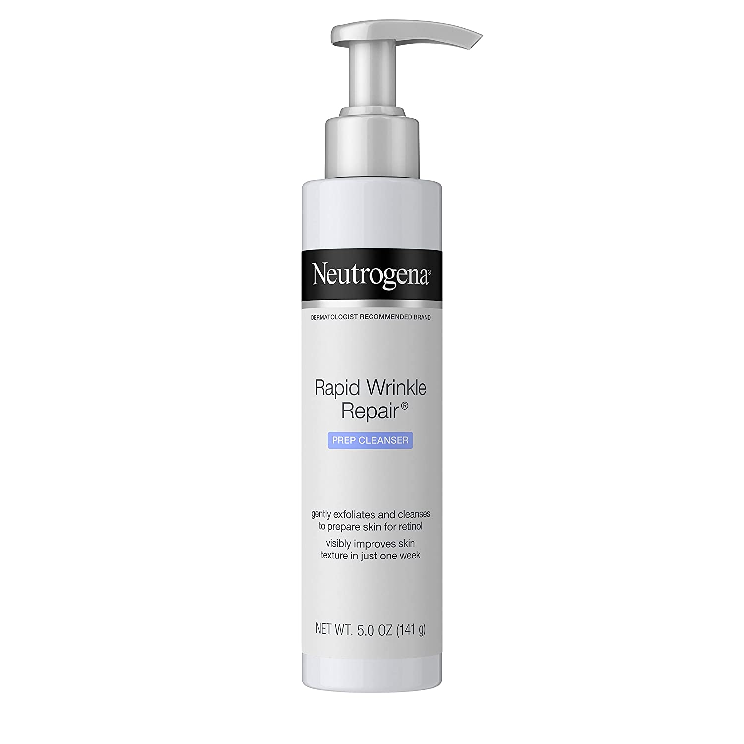 - 5-ounce bottle of Neutrogena Rapid Wrinkle Repair Exfoliating Prep Facial Cream Cleanser with Glycolic Acid to help prep your skin for retinol