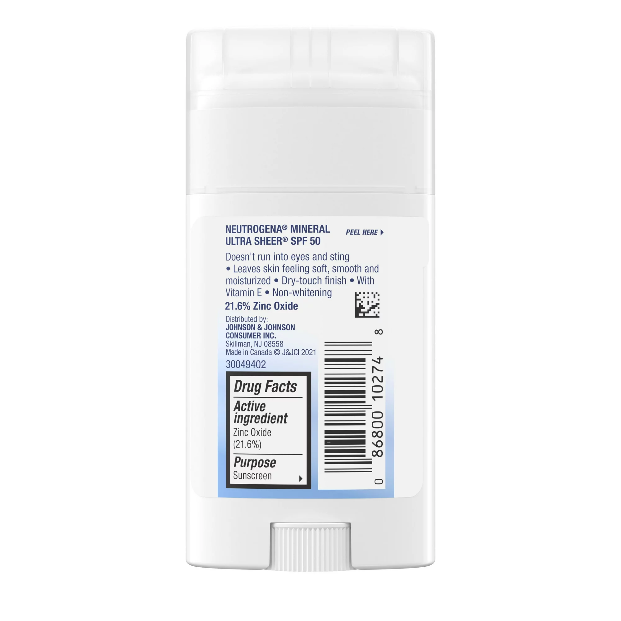 - Neutrogena Ultra Sheer Dry-Touch Mineral Sunscreen Stick with SPF 50, zinc oxide, & vitamin E
