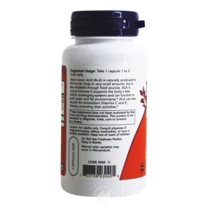 NOW Foods Alpha Lipoic Acid is a powerful metabolic antioxidant is unique in that it is both fat and water-soluble, can travel to any cell in the body and is therefore one of our most readily available oxidation destroyers. The “universal” antioxidant as its commonly referred to, Now Foods Alpha Lipoic Acid (or ALA) remains one of the most widely used and trusted free radical fighters to date. Naturally enhancing to the way our body uses B vitamins, Now Foods Alpha Lipoic Acid is also vital to the production of energy from the proteins, carbohydrates, and fats we take in each day.