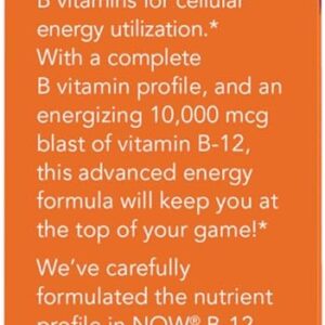 Looking to jump-start your day with a burst of natural energy? NOW B-12 is a powerful blend of vitamin B-12 and indispensable nutrients for cellular energy utilization.* With a complete B Vitamin profile and an energizing 10,000 mcg blast of Vitamin B-12, this advanced energy formula will keep you at the top of your game!* We’ve carefully formulated the nutrient profile in NOW B-12 10,000 mcg Energy Boost to work synergistically, in order to keep you sharp, focused, and naturally fired-up for hours!*