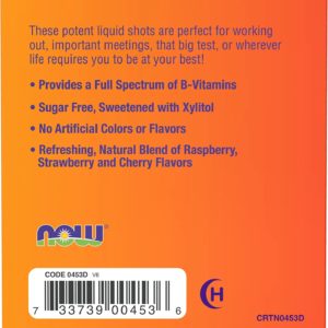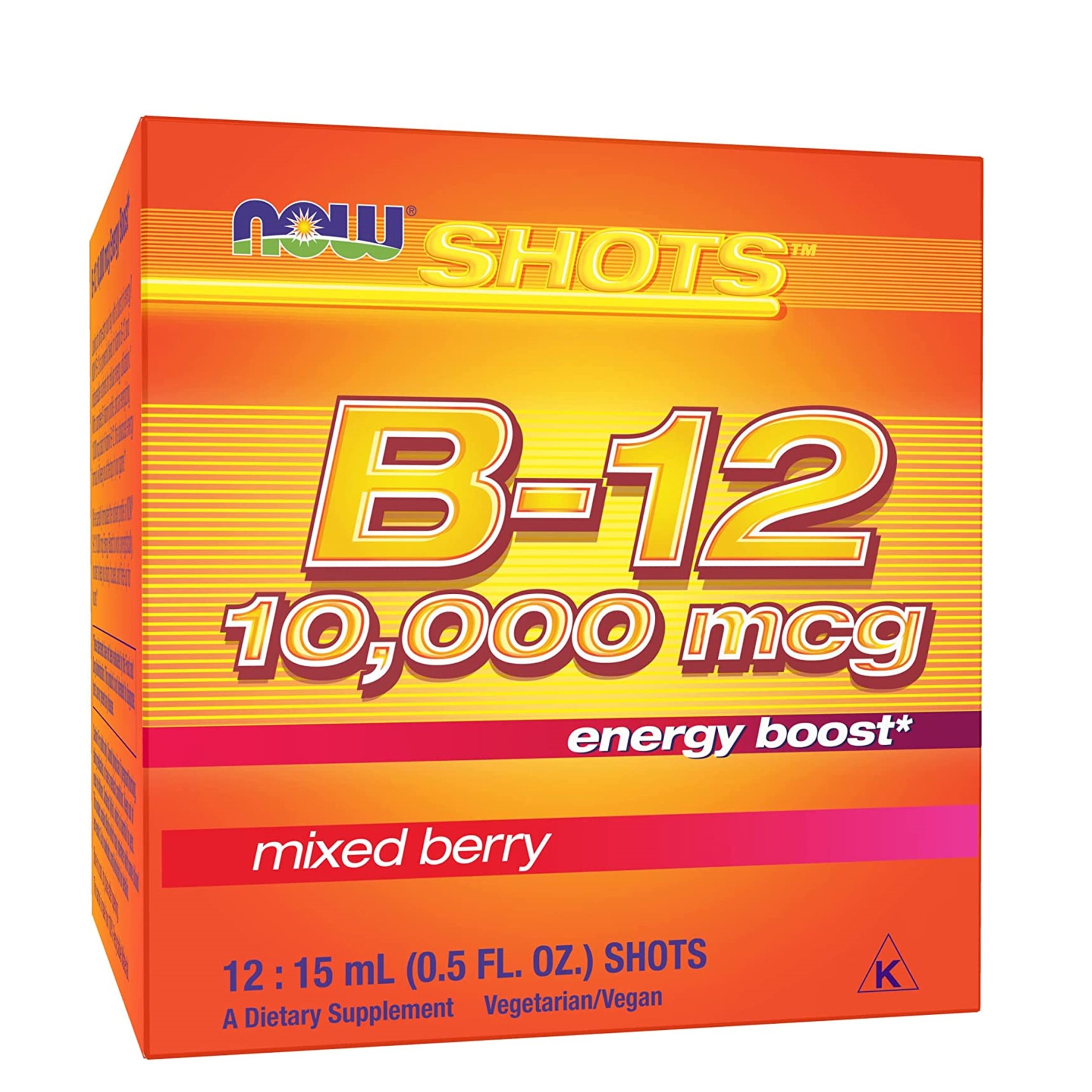 NOW Foods B-12 10,000mcg Shots 0.5 ounce 12 Count Box Mixed Berry