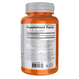 NOW Foods Sports Nutrition, Creatine Monohydrate 750 mg, 120 Veg Capsules