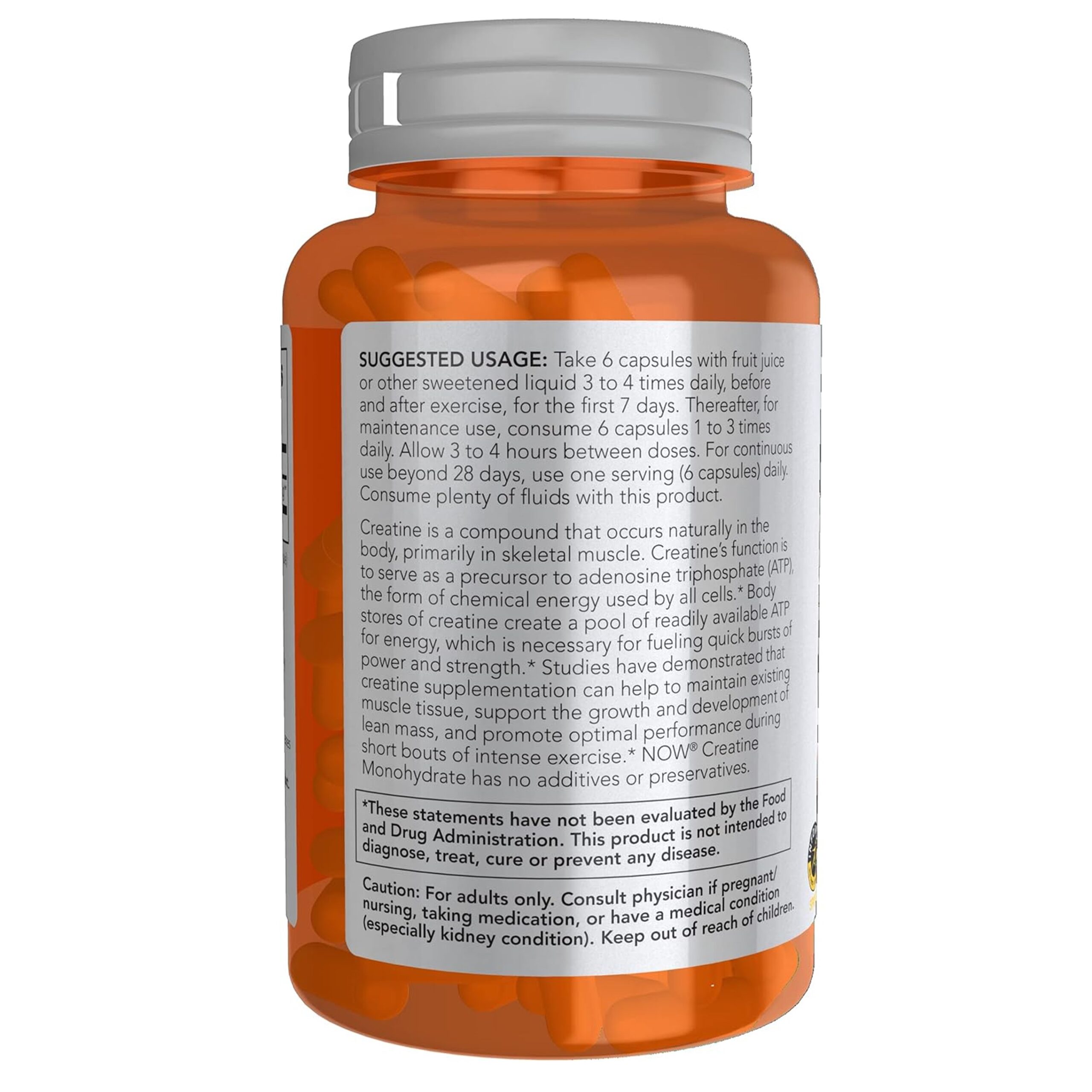 Creatine is a compound that occurs naturally in the body, primarily in skeletal muscle. Creatine’s function is to serve as a precursor to adenosine triphosphate (ATP), the form of chemical energy used by all cells.* Body stores of creatine create a pool of readily available ATP for energy, which is necessary for fueling quick bursts of power and strength.* Studies have demonstrated that creatine supplementation can help to maintain existing muscle tissue, support the growth and development of lean mass, and promote optimal performance during short bouts of intense exercise.* NOW® Creatine Monohydrate has no additives or preservatives.