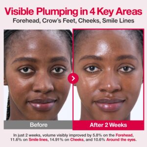- [CLINICALLY TESTED] Clinically proven to improve skin elasticity deep into 15 layers, and visibly plump key areas including the cheeks, forehead, nasolabial folds, and under-eyes. Clinical results show noticeable improvements in skin tone and hydration, with plumping effects lasting up to one week. Primary skin irritation test completed, free from artificial colors, and suitable for sensitive skin.