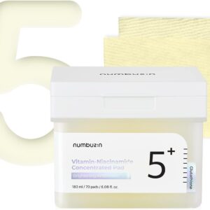 numbuzin No.5+ Niacinamide Concentrated Toner Pad | Glutathione, Niacinamide, PHA & LHA, 180ml/70pads/6.08fl.oz