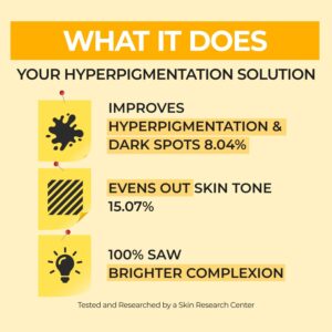 - Targets for: Blemish and spot, Hyperpigmentation, Uneven skin tone, Dull skin
