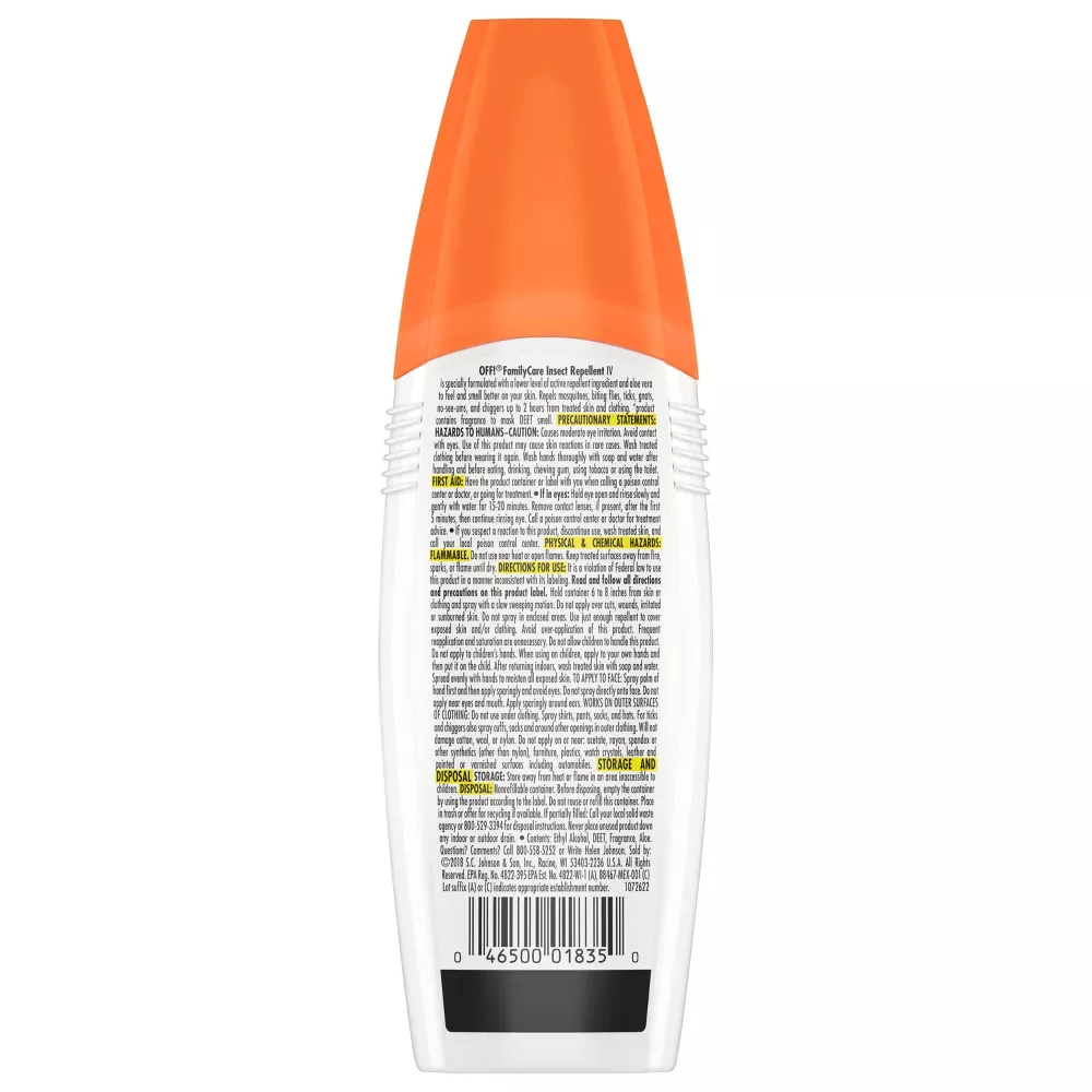 OFF! FamilyCare Unscented Insect Repellent IV provides just the right level of bug protection for spending shorter amounts of time outdoors. This unscented bug repellent is the perfect mosquito protection choice for the whole family.