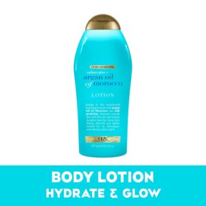 - GET HYDRATED, GLOWING SKIN: The 19.5-ounce bottle of OGX Radiant Glow + Argan Oil of Morocco Extra Hydrating Body Lotion for dry skin helps hydrate skin, giving it a beautiful radiant glow
