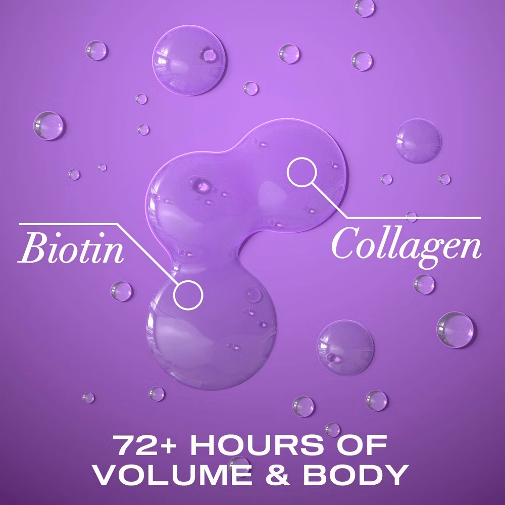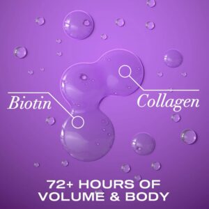 “Get 72+ hours of volume & body with OGX Thick & Full + Biotin & Collagen Volumizing Shampoo. This shampoo from the #1 Hair Repair Brand* leaves hair full & healthy. Our new & improved formula protects hair from excessive loss of lipids & proteins which creates frizz & breakage. Now with LipiPro Shield (TM) Technology, the texturizing shampoo provides 2x more protein & lipid protection** for healthy hair. The nutrient-infused formula with biotin & collagen delivers 72+ hours of volume & body plus the scents of bergamot, jasmine & vanilla enhance your hair routine. Apply to wet hair, massage into a lather, rinse & follow with an OGX conditioner. It has been carefully formulated to be without sulfated surfactants, parabens, phthalates, microplastics, & dyes.