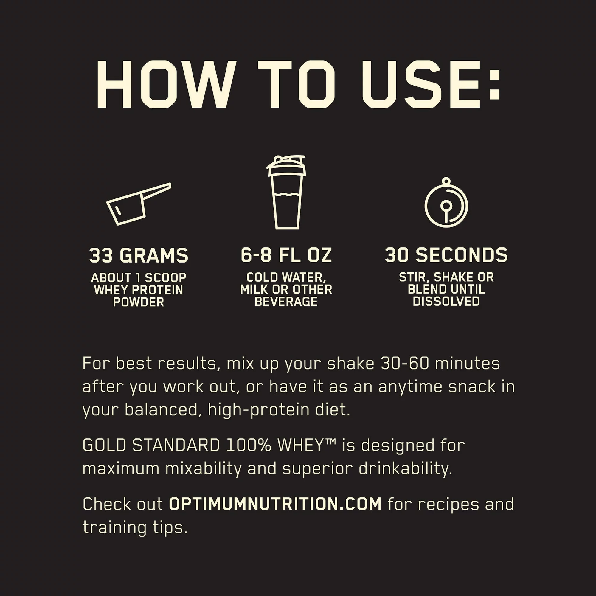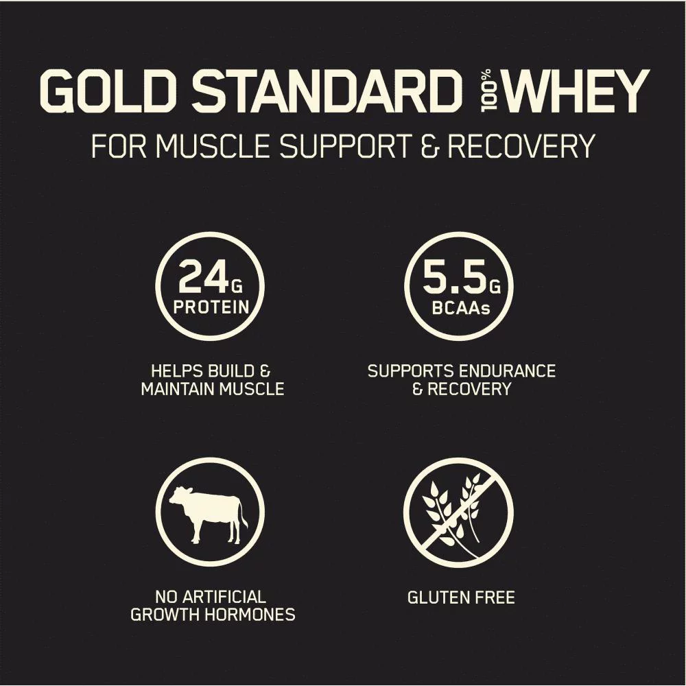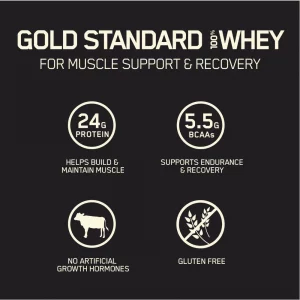 - GOLD STANDARD 100% WHEY BLEND – 24g blended protein consisting of whey protein isolate, whey protein concentrate, and whey peptides to support lean muscle mass – they don’t call it the GOLD STANDARD of quality for nothing