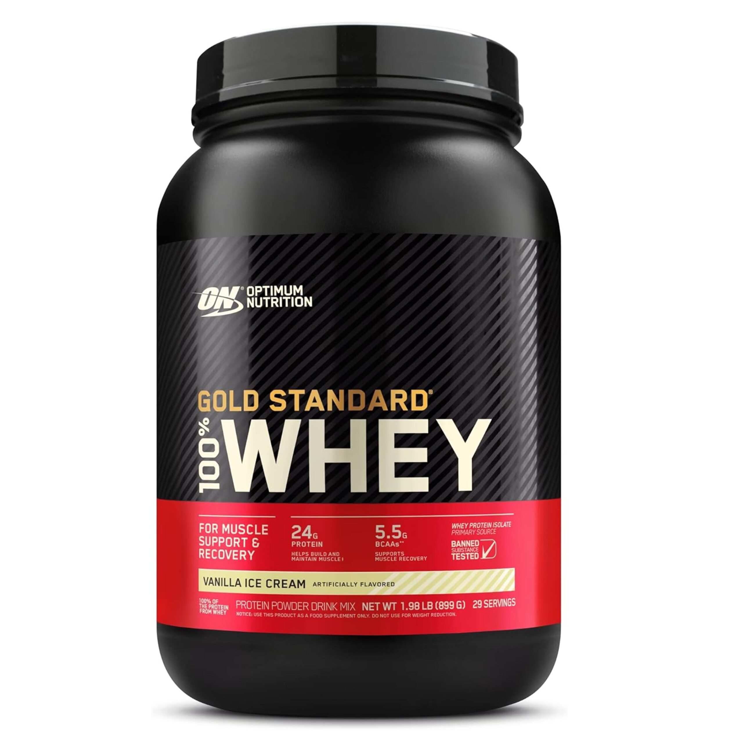 Optimum Nutrition Gold Standard 100% Whey Protein Powder, Vanilla Ice Cream, 2 Pound (Packaging May Vary)