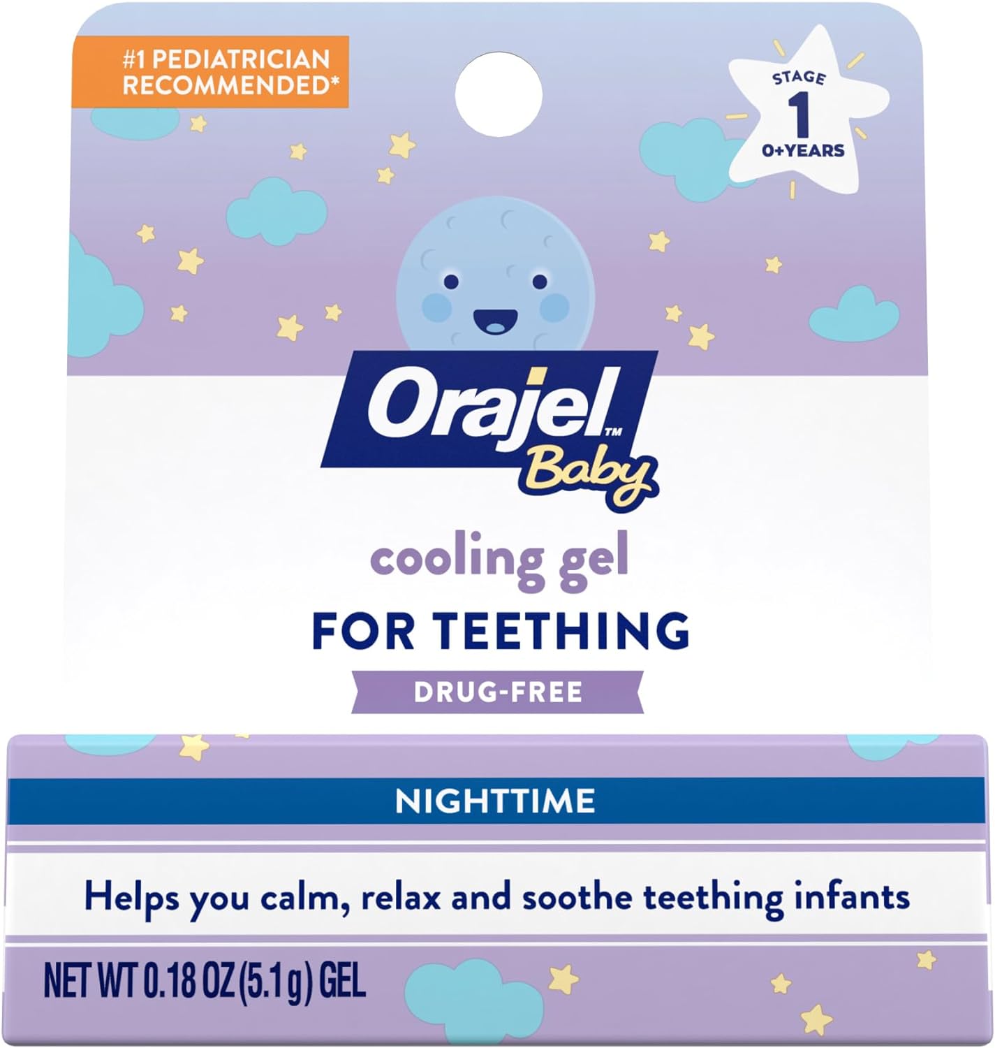 Orajel Baby Nighttime Cooling Gel for Teething, Drug-Free, 1 Pediatrician Recommended Brand for Teething, One .18oz Tube