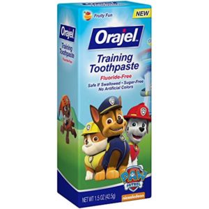Good oral care habits are the building blocks for a healthy life. To instill good oral care habits early, teach your little ones to brush with a non-fluoride toothpaste like Orajel PAW Patrol Training Toothpaste. Safe if swallowed, our non-fluoride formula is non-abrasive for gentle cleaning and remains gluten-free, sugar-free, paraben-free, dairy-free and SLS-free with no artificial flavors . And what better way to encourage kids to brush than with their favorite characters, the heroic pups of PAW Patrol featuring Chase, Marshall, and Rubble!