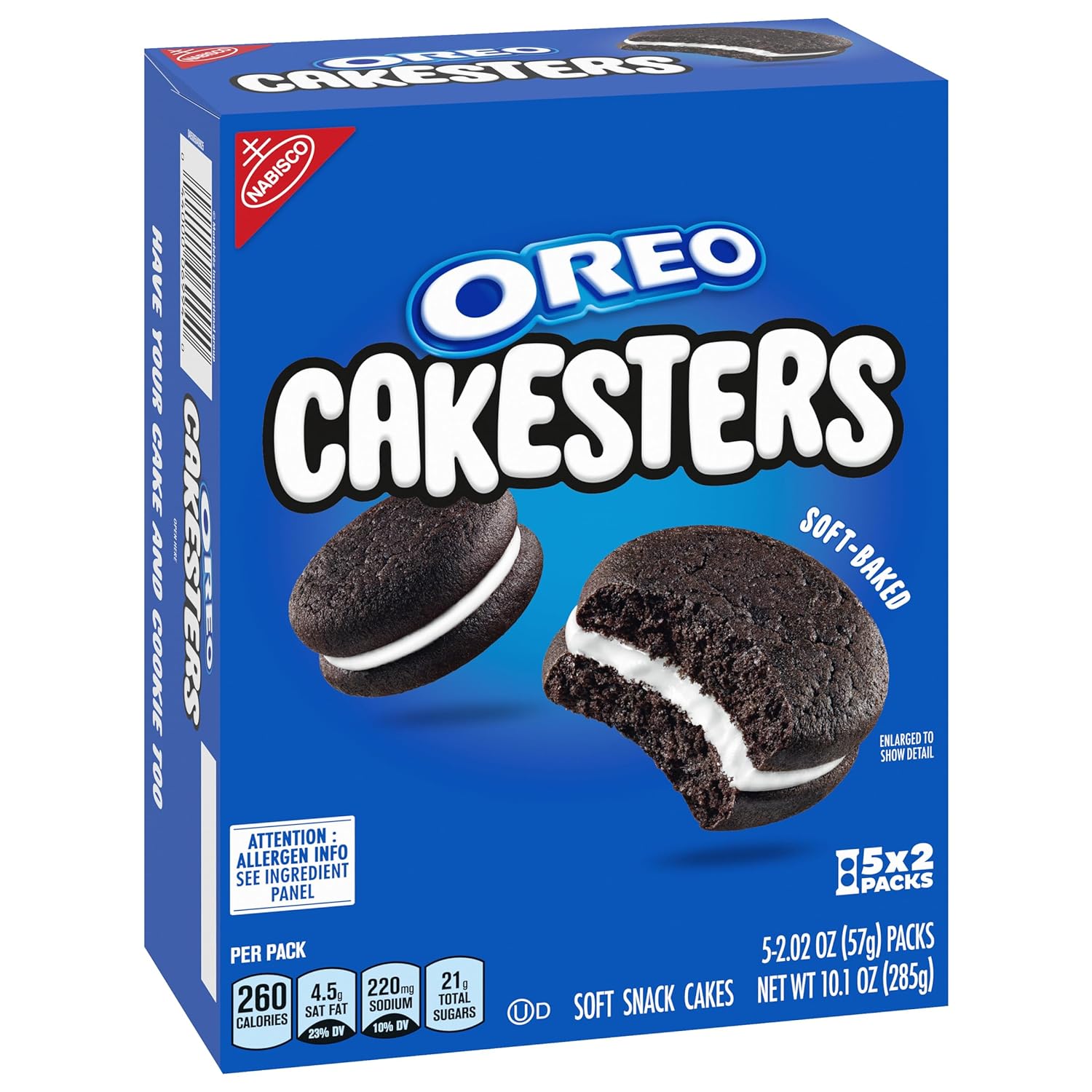 OREO Cakesters Soft Snack Cakes are a delicious, soft-baked twist on a classic sweet treat. These OREO snack cakes sandwich creme filling between two chocolate cakes, making them tasty sweet snacks for all ages. Each snack pack of OREO Cakesters includes 2 soft snack cakes making them ideal for packing into adult lunches, serving as birthday treats, office snacks or after school snacks for kids and adults. These convenient snacks make a great addition to your grab-and-go snack treats. OREO Cakesters–the delicious twist on America’s Favorite OREO chocolate sandwich cookie taste!