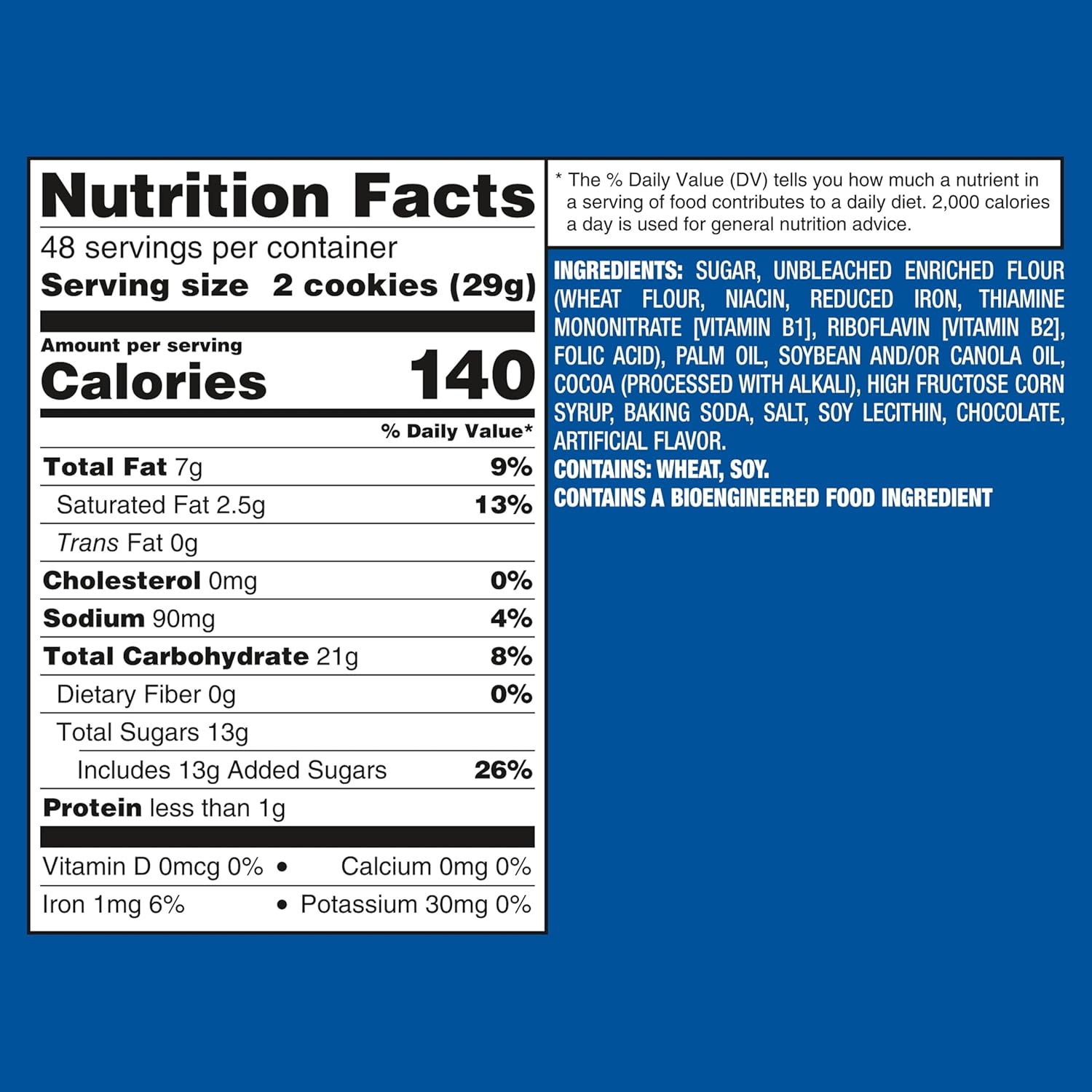 - Eight certified kosher chocolate cookies per individual king size snack pack