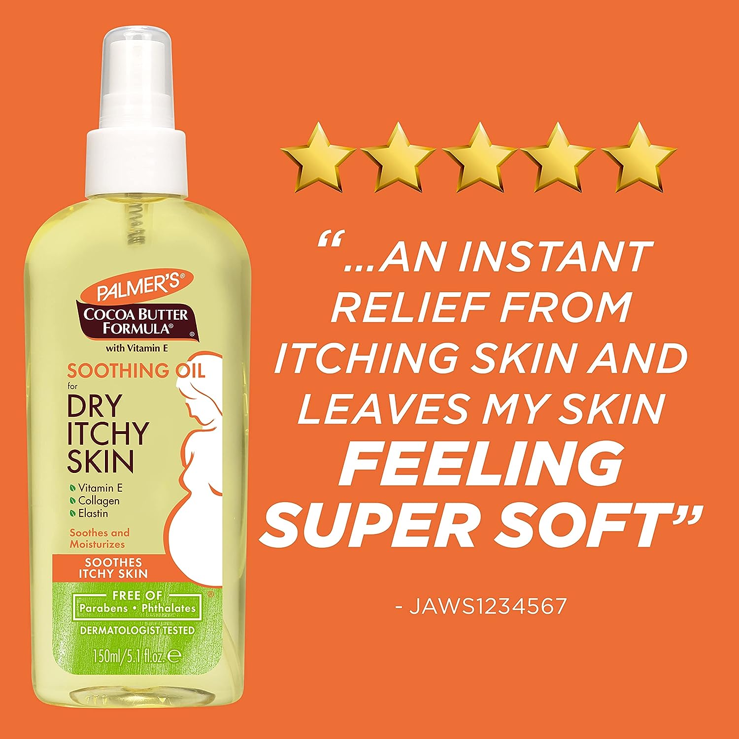 Palmer’s Cocoa Butter Formula Soothing Oil with Vitamin E, Dry, Itchy Skin Relief, Pregnancy-Safe Anti-Itch Body Oil, 5.1 Ounces
