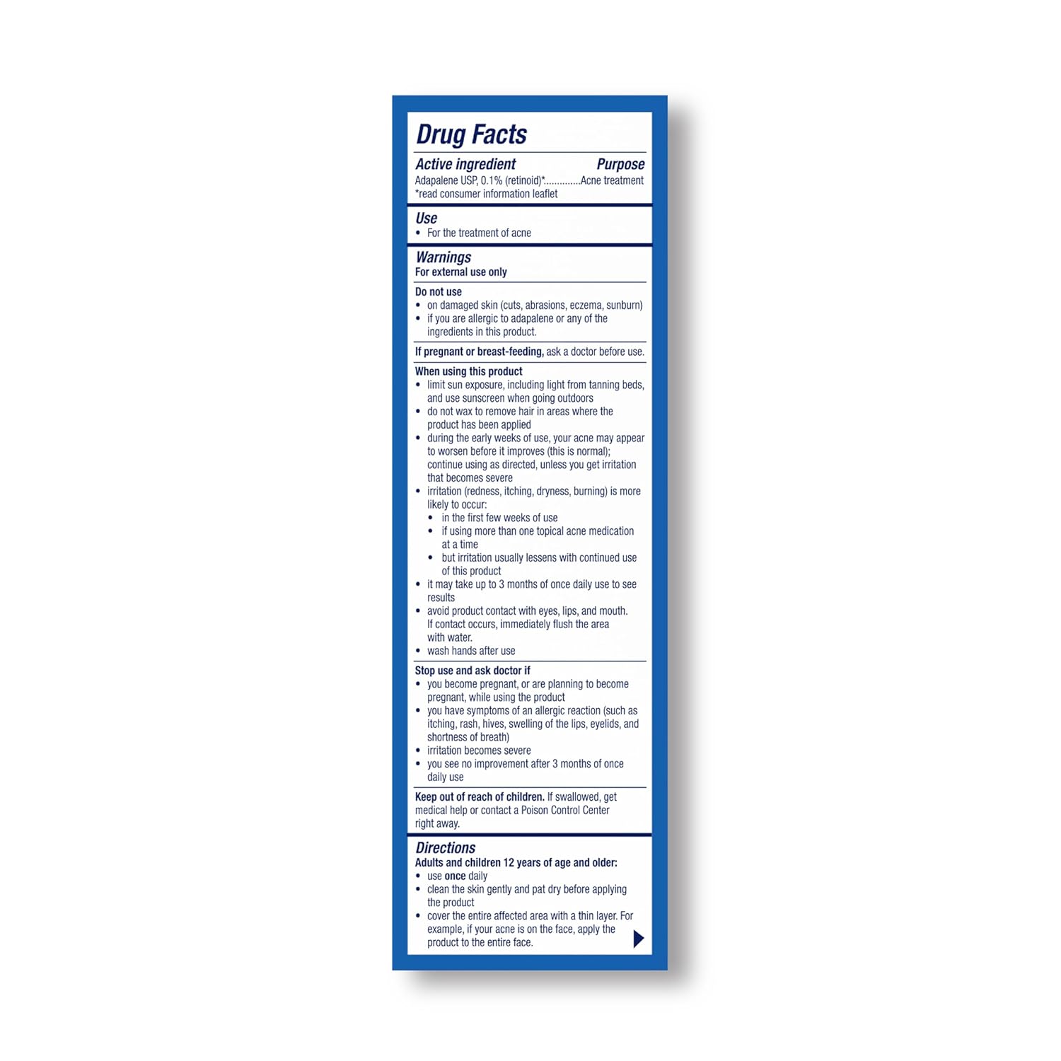 - Contains the active ingredient A dapalene USP, the first FDA-approved over-the-counter topical retinoid for acne treatment