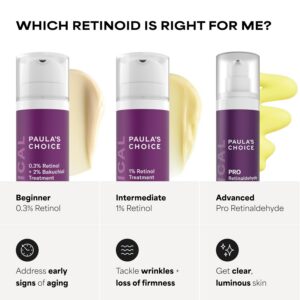 • RETINOL FACE SERUM: Paula’s Choice CLINICAL 1% Retinol is an ideal anti-aging serum for normal, combination, dry, & oily skin. Try mixing with 2-3 drops of Paula’s Choice Moisture Renewal Oil Booster. Use at night with Paula’s Choice cleanser, toner, exfoliator & night cream.