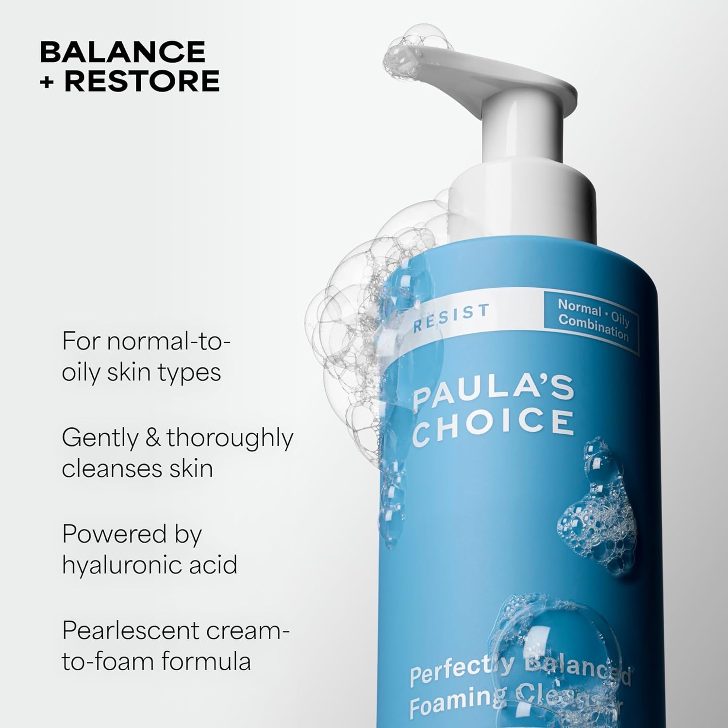 Paula’s Choice RESIST Perfectly Balanced Foaming Facial Cleanser, Face Cleanser with Hyaluronic Acid & Aloe, Anti-Aging Face Wash, Large Pores & Oily Skin, Fragrance-Free, 6.4 Fl Oz
