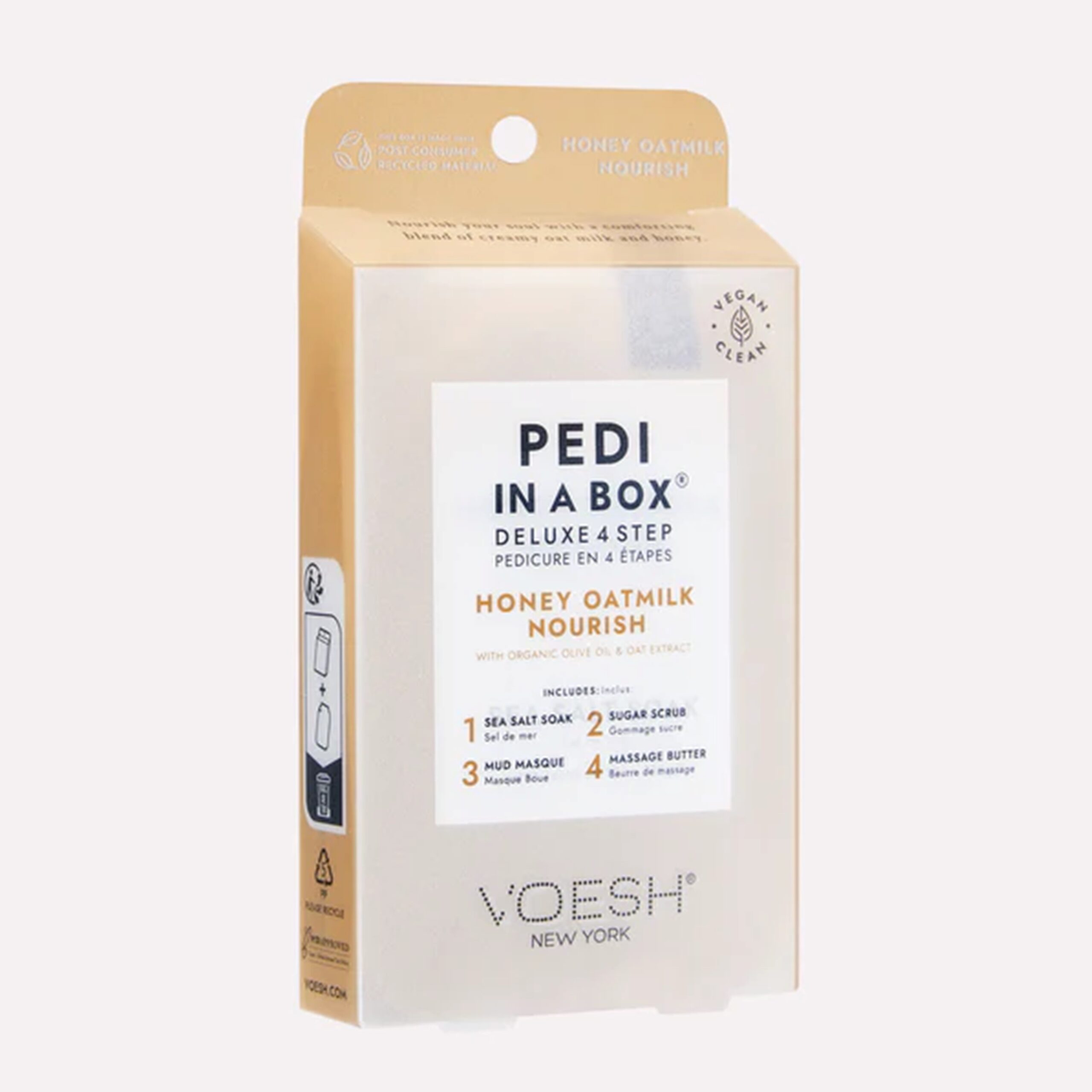 Apply mud masque on feet and lower legs to remove impurities from the skin, unclog pores, and absorb excess oil. Leave it on for 3-5 minutes while prepping clients’ nails. Rinse off with lukewarm water and pat skin dry.
