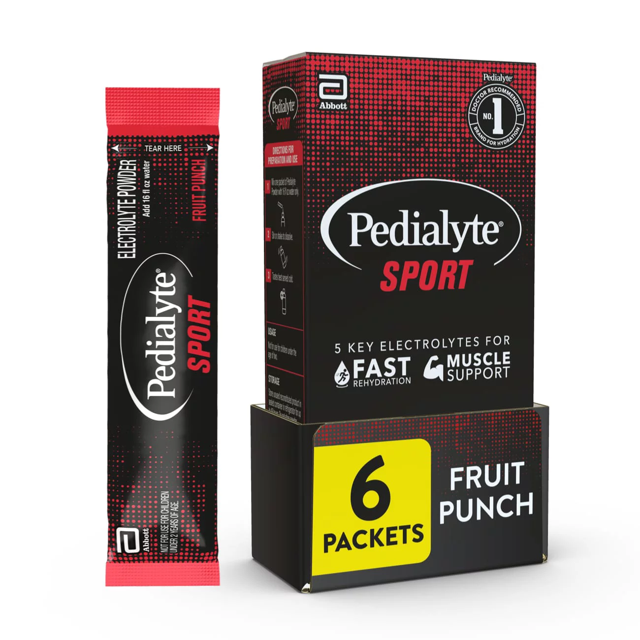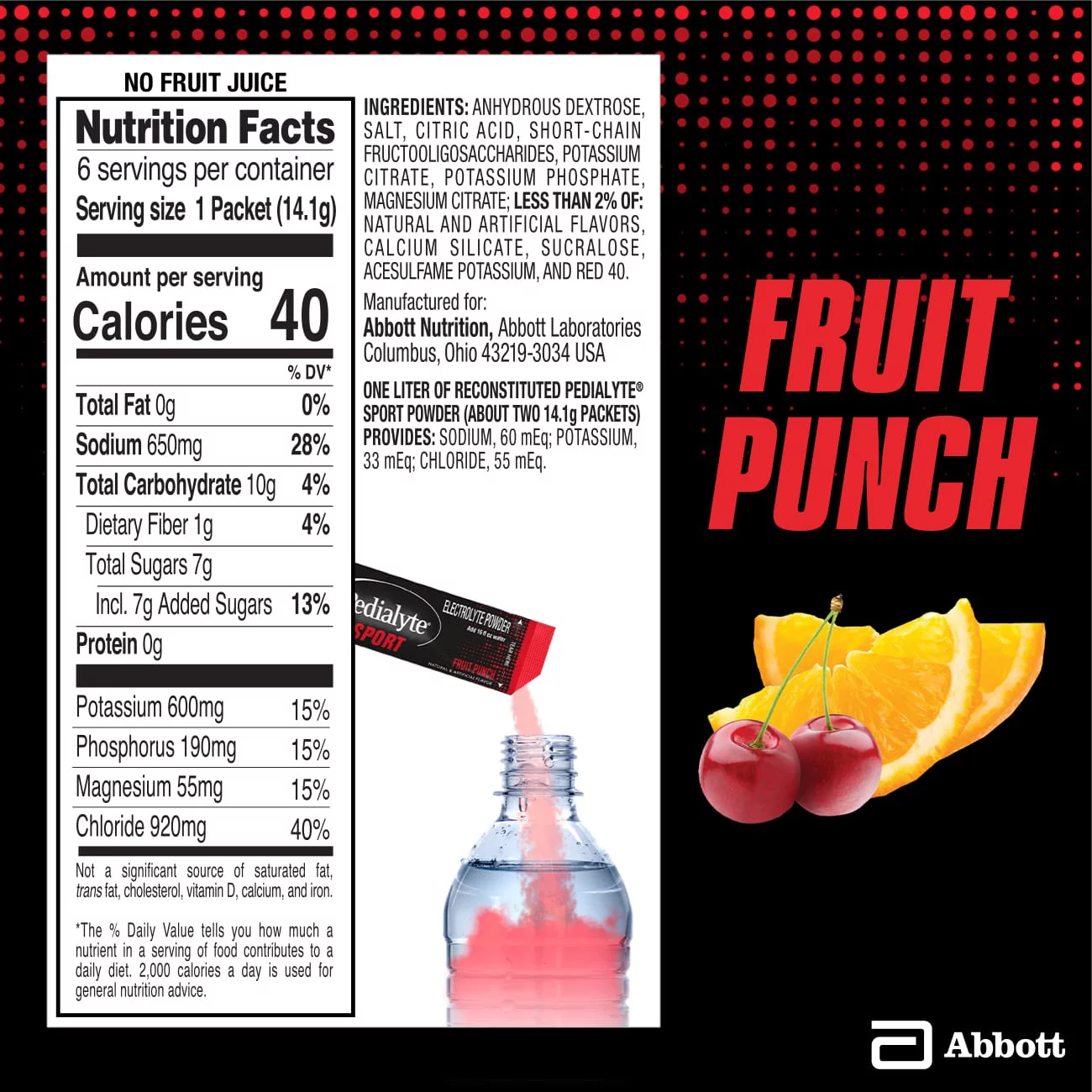 Pedialyte Sport, Fruit Punch, Electrolyte Powder, 0.49-oz Packets (6 Count)