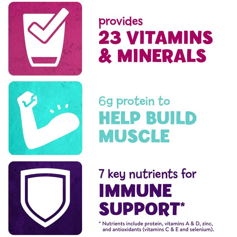 - 7 KEY NUTRIENTS FOR IMMUNE SUPPORT: Nutrients to help support kids’ immune systems with protein, zinc,vitamins A & D, and antioxidants (vitamins C & E and selenium)