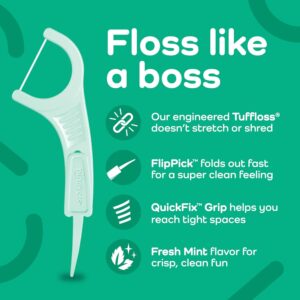 - TUFFLOSS: Engineered not to stretch, shred or break, this floss is the ultimate tool to remove trapped food debris and to keep gums clean and healthy