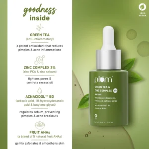 Plum Green Tea & Zinc Complex 3% | Fights Pimples & Tightens Pores | Controls Oil (30 ml)