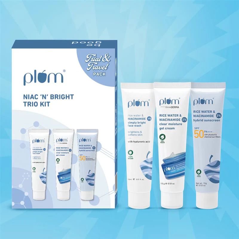 Plum Niacinamide Skincare Trio Mini Kit | Face Wash | Moisturizer | Sunscreen