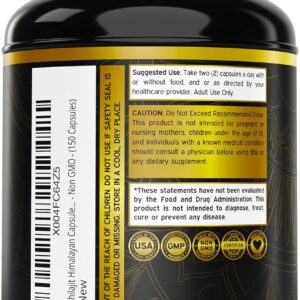 Pure Himalayan Shilajit with 85+ Trace Minerals (150 Capsules, 1000mg Extract per Serving) Pure Shilajit Capsules