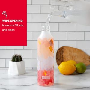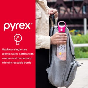 - HIGHLY FUNCTIONAL: The Pyrex reusable water bottle has a break resistant outer body and can be used for a variety of beverages including water, sports drinks, juice, or even tea and coffee. It is also easy to fill and clean, for quick refills.