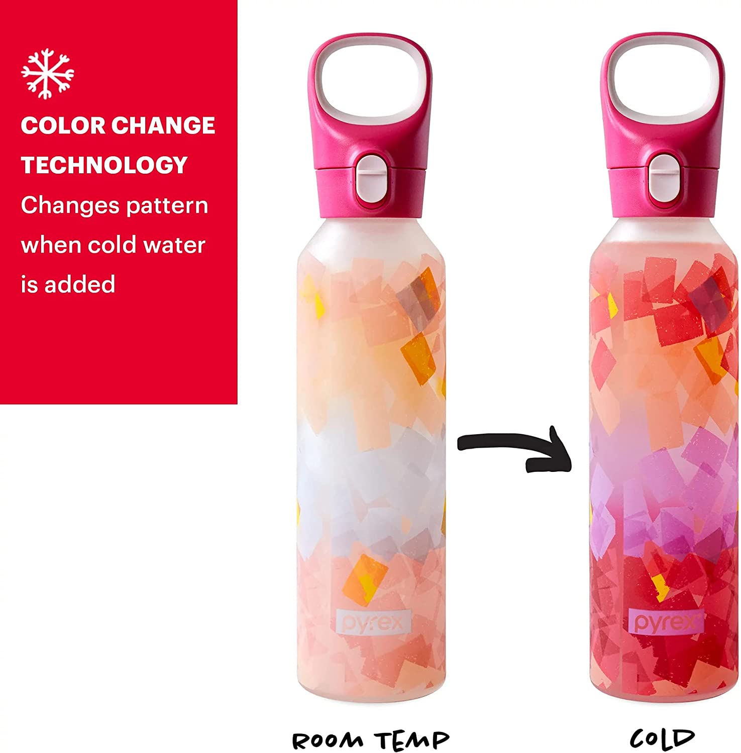 - COLOR-CHANGING: Style and technology blend seamlessly in this 17.5-oz water bottle. Fill it up with cold water and watch as the bottle comes to life with vibrant colors that will make your day.