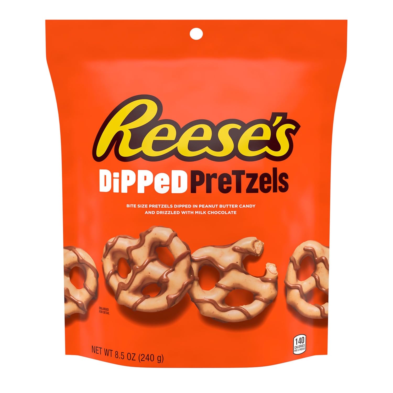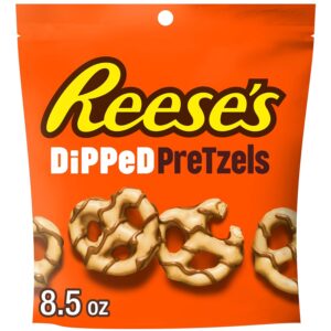 - Contains one (1) 8.5-ounce bag of REESE’S Chocolate and Peanut Butter Candy Dipped Pretzels
