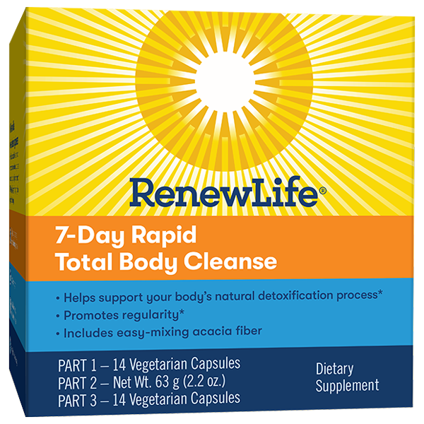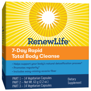 Renew Life 7-Day Rapid Total Body Cleanse is an advanced, 3-part herbal cleansing program. It is ideal for those who experience occasional constipation and want a fast, one-week cleanse. It works in harmony with your body’s natural detoxification process to help you feel lighter, brighter and more energized.