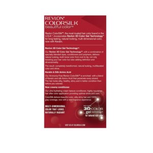 Revlon Color Silk Beautiful Hair Permanent Hair Color Color 27 Deep Rich Brown 1 Ct. The ammonia-free hair color delivers 100% gray coverage. Achieve rich, long-lasting hair color and a radiant shine at home. Revlon’s 3D Color Gel Technology™ delivers natural-looking, multi-tonal color from root to tip providing definition and boosting your hair’s dimension. Now enriched with keratin and silk amino acid, Color Silk ammonia-free formula leaves your hair in better condition than before you ever colored it