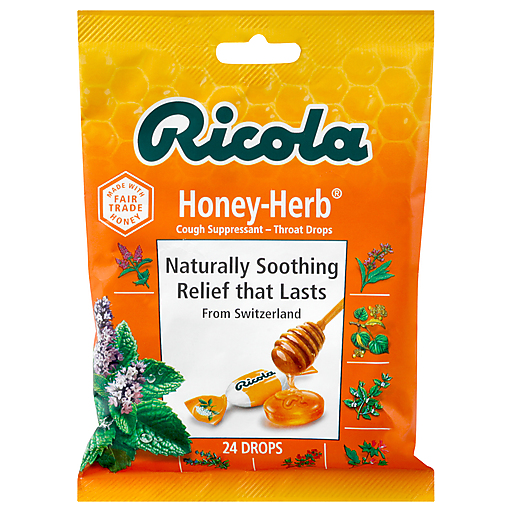 Ricola Honey Herb takes the unique flavor of our classic drop and softens it with real golden honey. Providing a taste your whole family will be buzzing about. Ricola Honey Herb can be used for soothing relief of coughs and sore throats. And always contains our unique blend of mountain grown Swiss herbs.