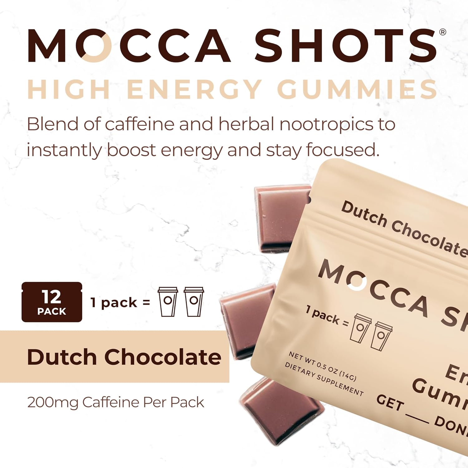 Seattle Gummy Company Caffeine Energy Gummies, Dutch Chocolate Mocca Energy Chews, Nootropic, Vegan, Plant-Based, Gluten Free, 200mg Caffeine 2-Pack