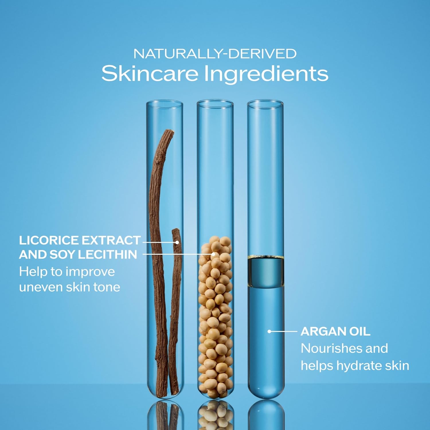 - SKINCARE BENEFITS – Composed of naturally-derived ingredients that help to improve uneven skin tone & smoothness. Licorice Extract & Soy Lecithin help improve uneven skin tone. Argan Oil helps hydrate skin. Free of oxybenzone, octinoxate & parabens.