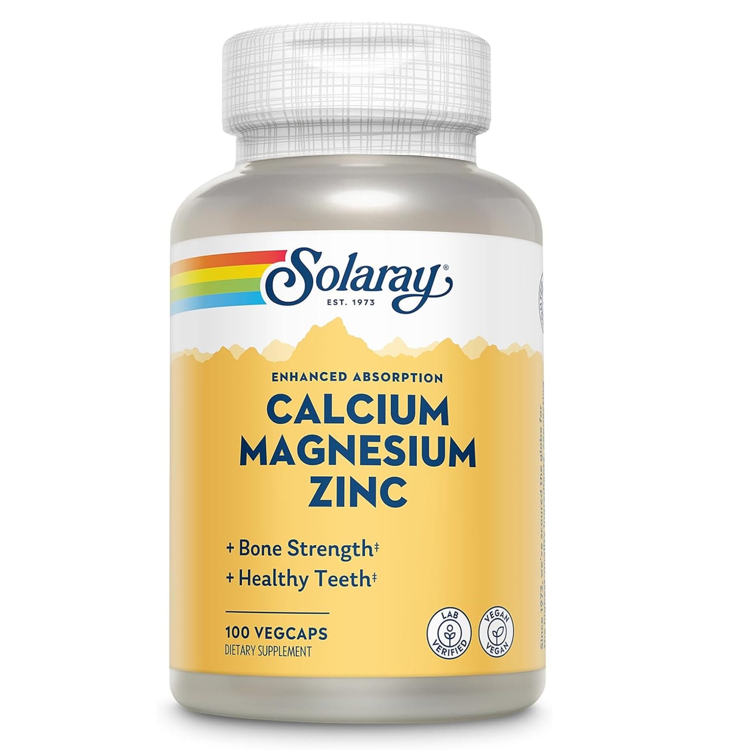 SOLARAY Calcium Magnesium Zinc Supplement – with Calcium 1000mg, Magnesium 500mg – Bone Health, Muscle Function, Heart Health and Immune Support – Vegan, 60 Day Guarantee, 25 Servings, 100 VegCaps