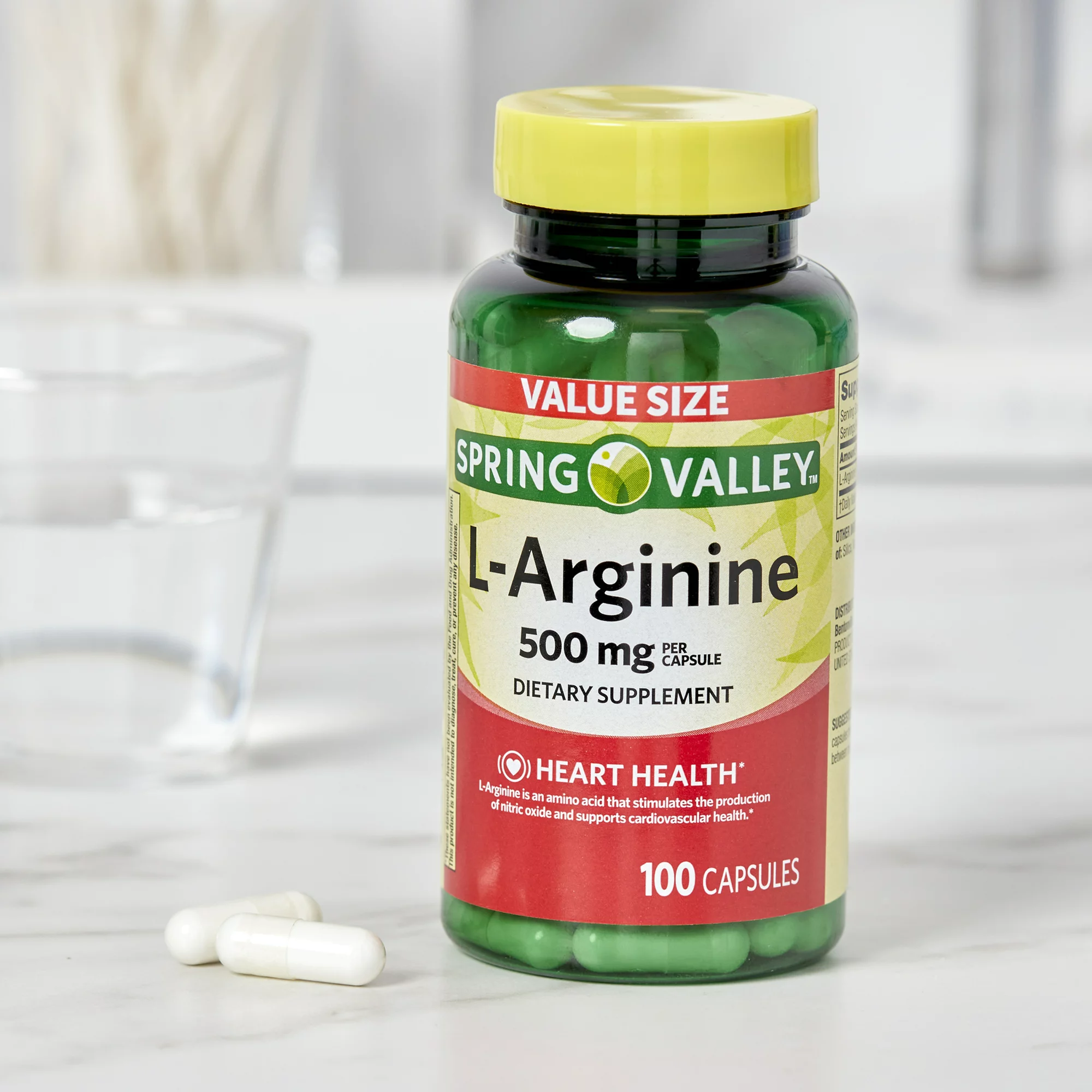 Spring Valley L-Arginine Amino Acid Heart Health Supplement Capsules, 500mg, Value Size, 100 Count