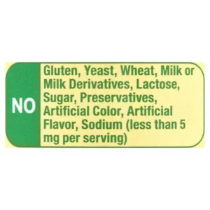 • No gluten, yeast, wheat, milk, lactose, or sugar