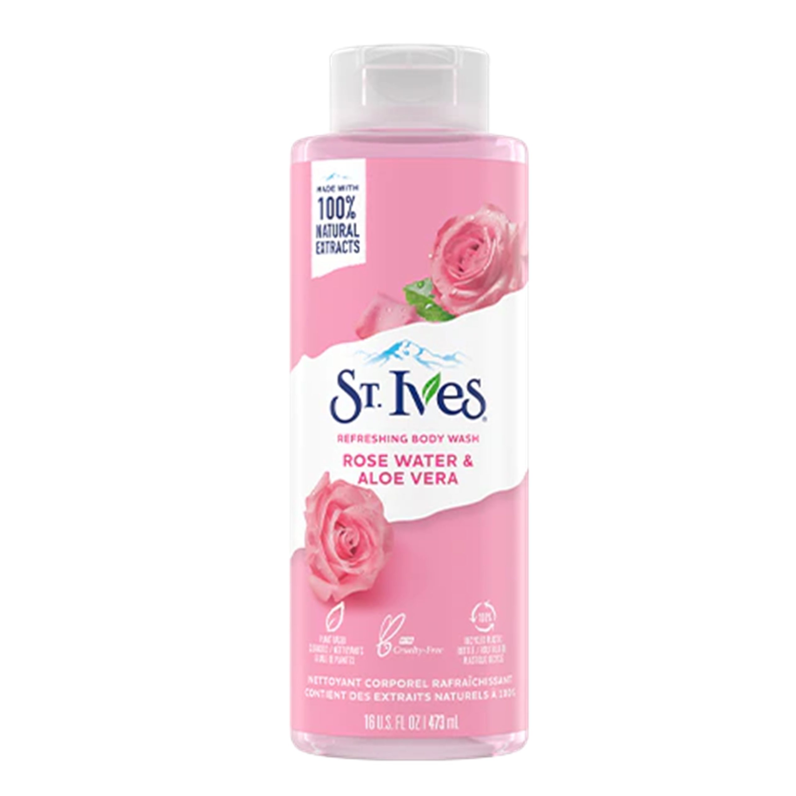 St. Ives Rose Water & Aloe Vera Refreshing Body Wash refreshes your skin for a balanced feel while cleansing with a sudsy sumptuous lather