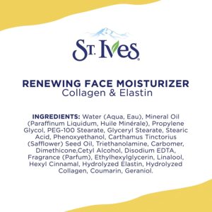 Give your skin a daily boost. St. Ives Renewing Collagen and Elastin Moisturizer combines the goodness of 100% natural safflower seed oil with collagen and elastin proteins to hydrate your skin and give it a smooth, youthful glow. This nourishing face moisturizer helps you support your body’s natural production of collagen and elastin proteins.