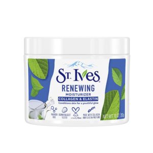 - St. Ives Renewing Collagen & Elastin daily facial moisturizer conditions skin for a youthful glow