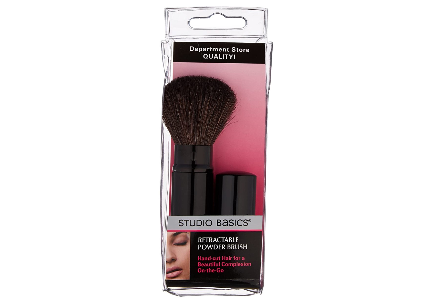Studio Basics Retractable Powder Brush with Soft, Natural, Custom Cut Hair for Flawless Application, Maximum Control for Expert Application, Retracts to Compact Size