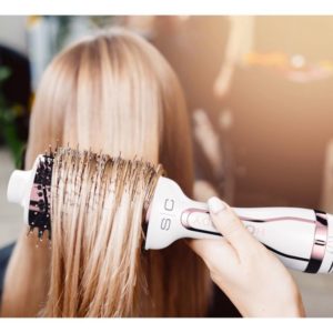 The Hot Body brush is the perfect combination of a round brush and a blow dryer, creating a shiny, bouncy salon blowout every time. Designed to save time by styling damp or dry hair with one tool. The oval design allows hair to dry evenly while adding volume to the roots and ends in one brush stroke.