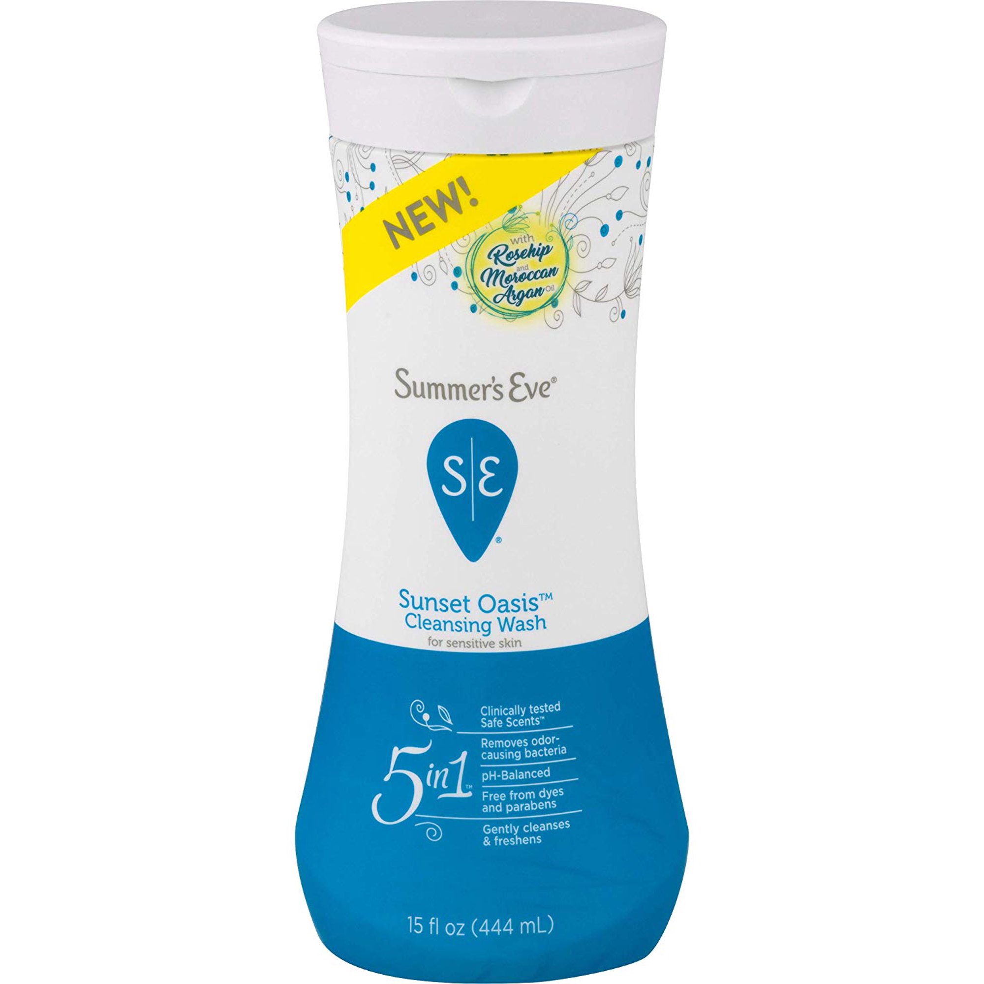 Summer’s Eve Sunset Oasis Feminine Cleansing Wash contains Rosehip and Moroccan Argan Oil and has lush fruity notes of an apricot and pomegranate scent blend with radiant florals for a clean, fresh scent. Free from dyes and parabens, Summer?s Eve Feminine Cleansing Washes are created for your most intimate areas, gently cleansing away the bacteria that can cause odor.