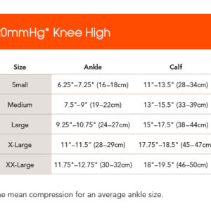 - 15-20 mmHg (the mean compression for an average ankle size)
