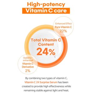 - Water-Free Formula for Maximum Freshness: Vitamin C24 Surprise Serum features a unique water-free formulation, specifically designed to delay the oxidation of Vitamin C. By eliminating water from the formula, we ensure that each drop of serum remains potent and fresh, delivering optimal results with every application.